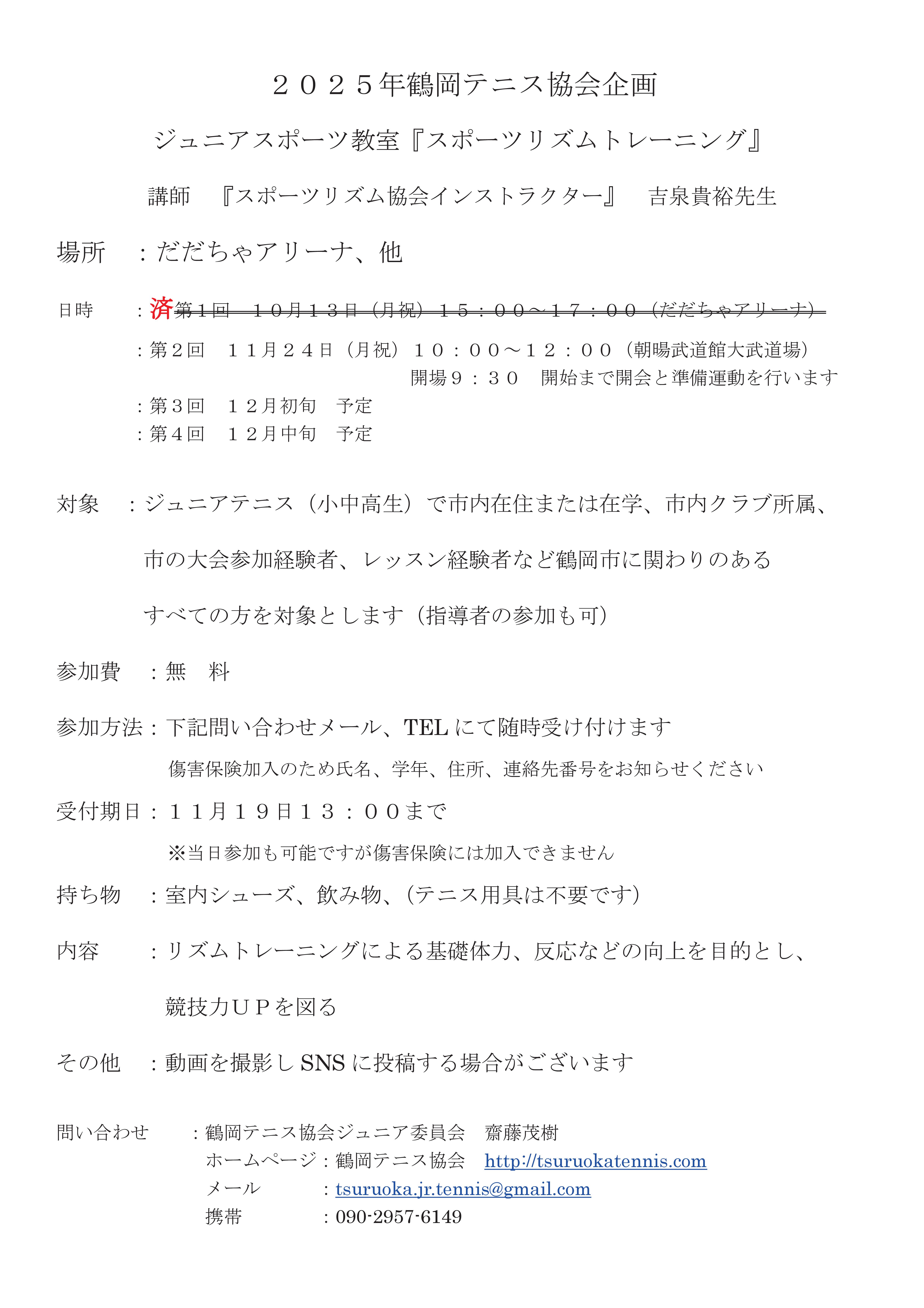 本HPに鶴岡オープン秋季大会の大会要項が掲載しておりませんでした。Facebookには掲載していましたが混乱を招いてしまい申し訳ありませんでした。 また、誠に残念ながら新型コロナウィルスの影響により本 …