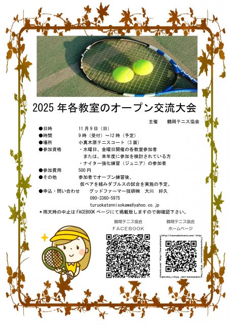 申し込みはturuokatennisokawa@yahoo.co.jpまで。